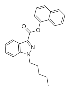 The complete chemical name SDB-005: naphthalene-1-yl-1-pentyl-1H-indazole-3-carboxylic acid.
